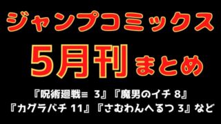 新刊2026年5月のジャンプコミックス『呪術廻戦≡ 3』『魔男のイチ 8』『カグラバチ 11』『さむわんへるつ 3』など