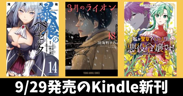 9月29日のKindle新刊『3月のライオン 18』『暴食のベルセルク 14』『私が聖女?いいえ、悪役令嬢です!7』など