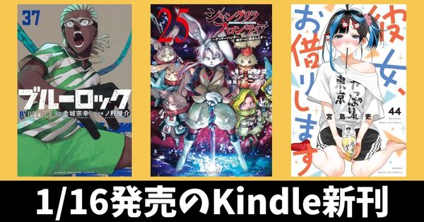 1月16日のKindle新刊『シャングリラ・フロンティア 25』『ブルーロック 37』『彼女、お借りします 44』など