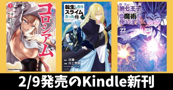 2月9日のKindle新刊『転生したらスライムだった件 31』『転生コロシアム 7』『転生したら第七王子だったので、気ままに魔術を極めます 22』など