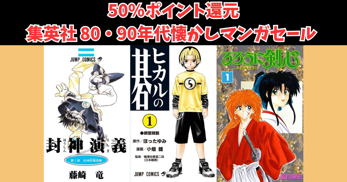 【50%ポイント還元】集英社80・90年代懐かしマンガセール『ヒカルの碁』『封神演義』『るろうに剣心』など