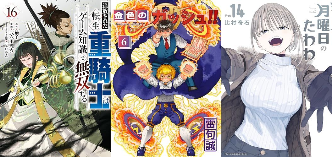 『追放された転生重騎士はゲーム知識で無双する 16』『月曜日のたわわ 14』『宇崎ちゃんは遊びたい!14』にも注目!